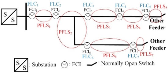 Therefore, when a fault occurs, the line current path can be easily obtained from Equation (2). For example, if a fault occurs in FLS k, then the faulted line currents can be obtained from: