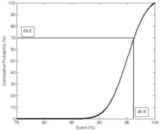 Event probability for stochastic analysis based on the Monte Carlo method.