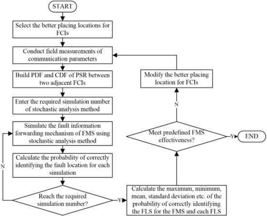 The proposed systematic effectiveness assessment methodology for FMS can be applied to urban and rural distribution systems. No special attention is required for ZigBee communication used in rural distribution systems. The flowchart of the proposed systematic effectiveness assessment methodology for FMSs is illustrated in Figure 13.
