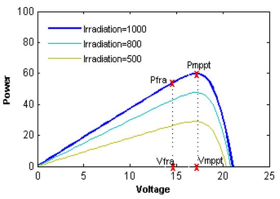 Multiple PVs and controllable loads under a centralized control method formed a virtual power plant (VPP) in Ref. []. The demand of the controllable loads and the PV systems’ power output are organized by resolving a mixed integer programming (MIP) problem to flexibly adjust the VPP power production. Nevertheless, this methodology suffers from high complexity and by being time-consuming and may lead to failure since it uses two iterative algorithms, one depending on the other. In Ref. [] a pseudo power point tracking method is introduced to provide a functionality of frequency regulation for PV systems. Through such a method, the raw produced power of the PV panel is traced by utilizing different processes embedded within an maximum power point (MPP) controller. For the true MPP, a Perturb and Observe algorithm is utilized and for the pseudo MPP, the open-circuit voltage algorithm is used. The Perturb and Observe algorithm is not very accurate and can fail under rapidly changing atmospheric conditions. In addition, the paper does not address how to specify constantly changing VOC while the system is in operation.
