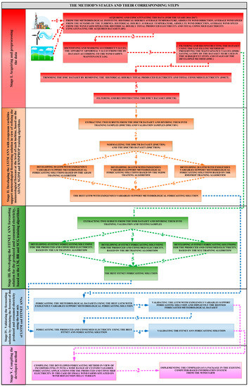 We have structured our devised forecasting method into five consecutive stages. In the first stage, consisting of five steps, we have acquired and preprocessed the datasets collected from the specialized meteorological institute, from the turbines’ sensors, and from the 10 MW Production Group.