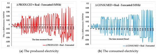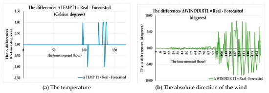 - The excellent forecasting accuracy of our developed method is highlighted by the registered performance metrics, as in the case of the meteorological forecasting component of our developed method, after having validated its prediction accuracy, we have registered a value of 0.1609 for the Root Mean Square Error when forecasting the refined meteorological parameters at the level of each and every turbine for the next 24 h (one day-ahead, the main goal of the paper) and a value of 1.8662 for the next 168 h (a whole week ahead), while in the case of the produced and consumed electricity forecasting component, we have registered, after the validation process, the values of 0.0011195 for the Mean Squared Error and 0.99628 for the correlation coefficient R.
