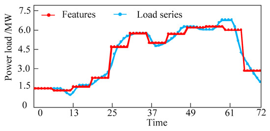 As we can see from the Figure 2, the initial load series of length 72 is reduced to 12 features which reflect the overall trend of the original load series. In fact, the more the number of features, the more detailed about the trend of the original load series can be described. But analysis and data mining of the load series will become very difficult because of the features with high dimension. Therefore, the number of features is also very important to the result, which can be obtained by empirical formula or experiment.