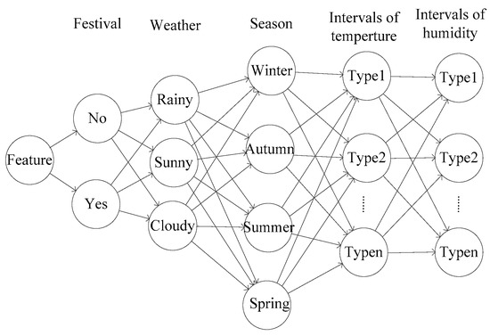 The power load of residents is affected by factors such as holidays, weather and other factors. The power load has some similarity in the same environment. For example, the residential load can be forecasted by historical days that the factors are similar, such as the lowest temperature, the highest temperature, the average temperature, humidity, and so on [20]. As shown in Figure 5, the historical cases can be described with seasons, holidays, weather and other symbolic features, and the historical cases can be primarily screened according to the symbolic features.