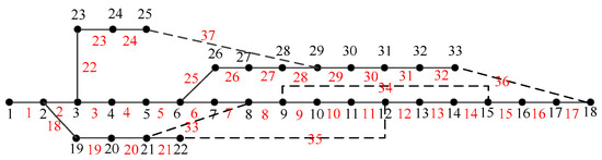 The proposed method will be tested on modified IEEE 33-bus system whose topology can be seen in Figure 8. For more detail about the parameters of branch, readers can refer to [24]. The hourly load factor is derived from Karnataka Power Transmission Corporation Limited, which contains actual historical data from 2010 to 2017. The largest motion time of single switch is 3 and the largest motion time of all switches is 15. The energy purchased price is 0.11$/kWh, and the switch motion cost is 1.11$/time. The dynamic reconfiguration strategy of historical cases belong to the global optimal solution which obtained by enumeration method. The algorithms were implemented by MATLAB R2014a, Windows7, Intel(R) Core(TM) i3-3110M CPU@2.40GHz,6.00 G RAM.