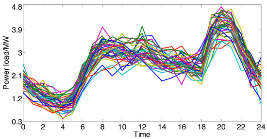 As can be seen from Figure 3, the trends of power loss and load curve are roughly the same. When the load is heavy, the voltage of the node drops. On the contrary, if the load is light, the voltages will rise. In short, the power loss, voltages and power load have a strong correlation. When the distribution network load level is similar, the distribution network can use a similar topology to control the direction of power flow, so that the distribution network can operate in a safe and economic environment. Therefore, the power load of each node is selected as the original feature of static reconfiguration to evaluate the similarity between the current case and historical cases.