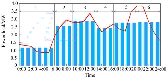 The schemes of the candidate cases are calculated based on a gradual approaching method which determined the time intervals by time enumeration method [10]. The dynamic time warping between the current case and the candidate cases are calculated and the scheme of the candidate case with the smallest dynamic time warping will be used to divide one day into several time intervals. As shown in Figure 10, the daily load curve is finally divided into six time intervals, and the results are basically in line with the trend of the curve.