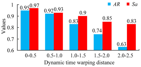 As can be seen from Figure 11, the smaller the dynamic time warping is, the higher the satisfaction is. This phenomenon shows that if we apply the scheme of historical cases whose dynamic time warping is smaller into current case, the comprehensive costs will also be smaller. In addition, it can be found that the smaller the dynamic time warping between the historical case and the current case is, the higher the corresponding accuracy rate is. It shows that if the dynamic time warping is smaller, the probability that the scheme of the historical cases is the optimal solution of the current cases is higher.