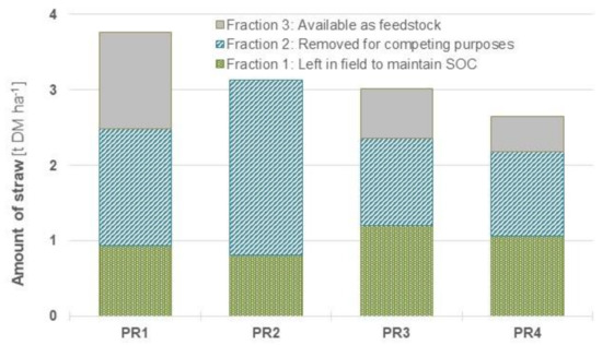 Distribution of straw fractions in the assessment of the different production regions (PR1–PR4).