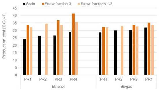 Cost impact of regional differences and ratio of straw removal. PR2 has no available straw in fraction 3.