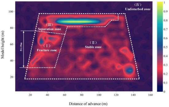Figure 11 shows the porosity data set collected at 122 m prior to the working face and the division of the fracture zone area according to the porosity distribution characteristics.