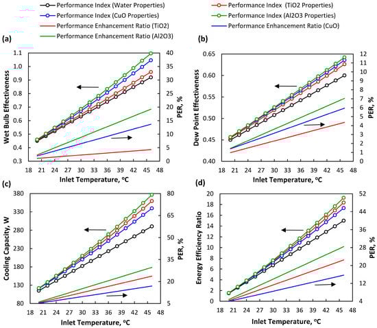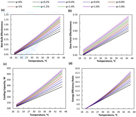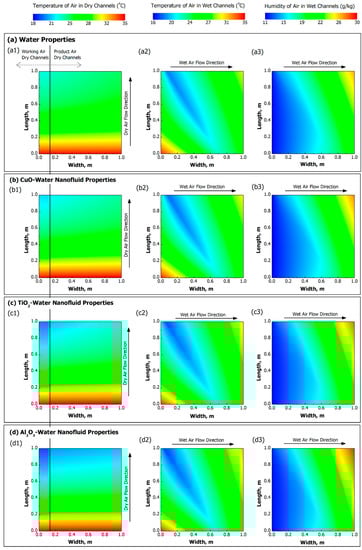 - Tariq, R.; Zhan, C.; Zhao, X.; Sheikh, N.A. Numerical study of a regenerative counter flow evaporative cooler using alumina nanoparticles in wet channel. Energy Build. 2018, 169, 430–443. [Google Scholar] [CrossRef]
