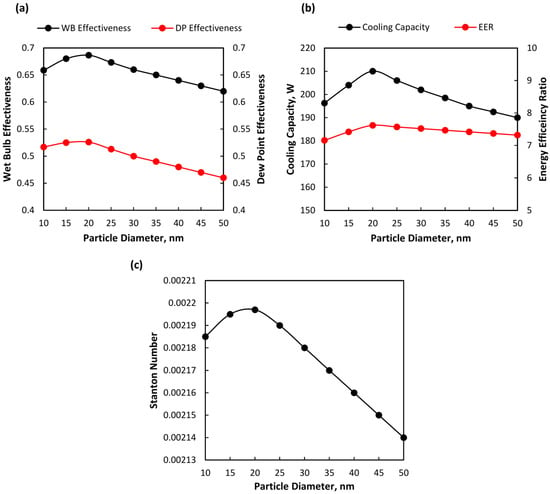 5.3.2. Influence of Particle Diameter on Cooling Performance