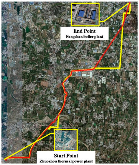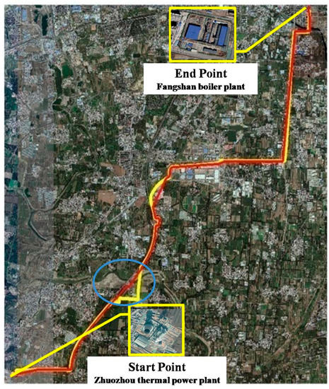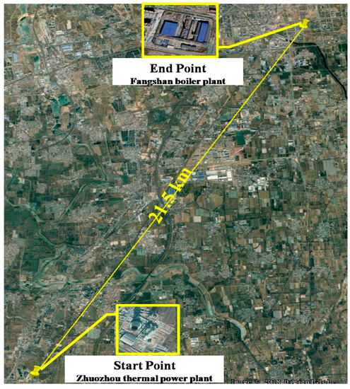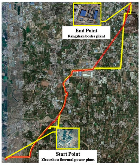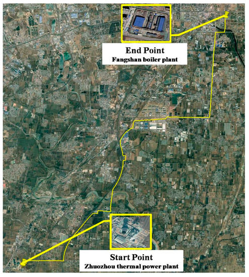 The ZF heating engineering project starts from the Zhuozhou thermal power plant in Hebei province and ends at the Fangshan boiler plant in Beijing. The locations of the start point and the end point are shown in