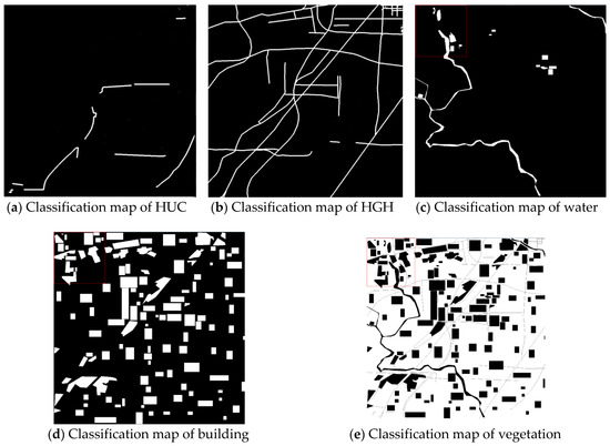 IHUC represent the binary images of vegetation, water, HGH, and HUC, respectively.