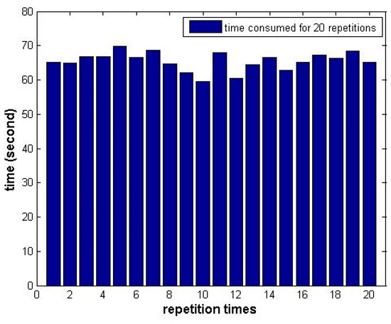 Figure 14. The average elapsed time was 65.46 s. Considering the 1000 iterations and 34 solutions for every run, the time consumed for one solution was approximately 1.93 ms.