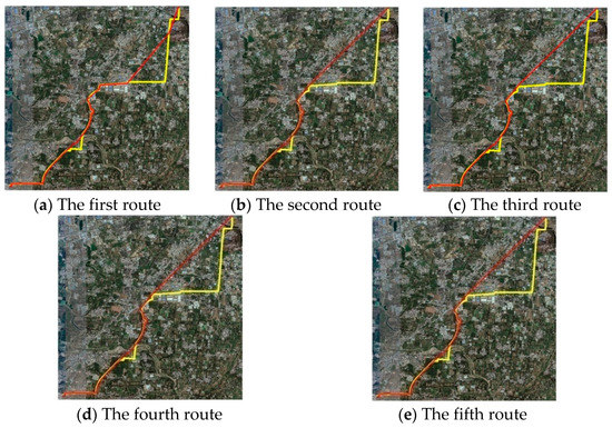 There are several improvements that we can focus on in the future. One is the improvement of the operational efficiency. By introducing parallel computing technology, the computing scale can be enlarged, and the computation time can be significantly shortened. The other is the 3D detailed route optimization with the support of the secondary data, such as other pipeline distribution maps, geological profiles, and the delicate DEM and DSM. Furthermore, with the help of 3D GIS technology, the interaction of the route and the users can be realized. Finally, we expect that the HACCS algorithm can be applied to route selection problems in broader engineering problems.