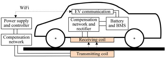 Electric vehicles (EVs) have the advantages of green environmental protection and zero emissions, and they have become one of the main directions for the development of new energy vehicles [1,2,3]. EV wireless charging, compared with wired contact charging, eliminates the dependence on the wire and can solve the following problems in the wired charging [4,5]: (i) because the voltage or current of the battery pack is large, contact charging easily generates sparks when the plug is in contact, which may cause safety problems; (ii) contact charging may cause short circuiting or current leakage in weather such as rain or snow; (iii) it is difficult to achieve automatic charging due to manual operation of the charging; and (iv) the location of the charging system is not flexible enough. Therefore, wireless charging technology for EVs has become one of the focuses of relevant scientific researchers and industrial personnel in recent years.