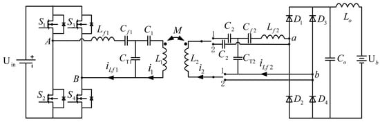 On the basis of the battery characteristic curve, the adaptive smart charging method proposed in this paper combines the compensation network output characteristics and the stage charging method. The proposed switching circuit between the bilateral L3C and L3C-C compensation network is shown in Figure 5.