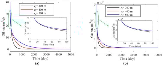After validation, the influences of some critical parameters on gas and oil production performance are analyzed with the semi-analytical model. Table 2 shows the input parameters used for the sensitivity analysis.