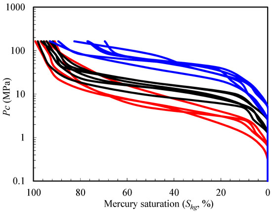 - The capillary pressure curves are divided into three types: displacement pressure <2 MPa, 2–5 MPa and >5 MPa. Type I rocks have the smallest displacement pressures while Type III the highest displacement pressures and lowest maximum mercury intrusion saturation. The pores of type I rocks are mainly dissolution pores, and type III are clay pores.