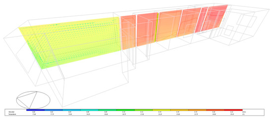 The monitoring equipment was installed after the construction of the building. To install some of the surface temperature sensors, a quasi-circular surface of around 40 cm in diameter had to be destroyed since four layers of the façade had to be broken The apparatus installed included sensors for measuring relative humidity of the outdoor and indoor air, the surface temperature in the different parts of the enclosure, solar radiation using a pyranometer located 1 m away on the façade, indoor air velocity, external cavity air velocity, and temperature (Table 2). Temperature sensors (PT 100) were placed in each of the layers of the façade’s enclosure (Figure 10 and Table 3 and Table 4). Due to the risk of interstitial condensation, a humidity sensor was placed in the layers of the enclosure [35].