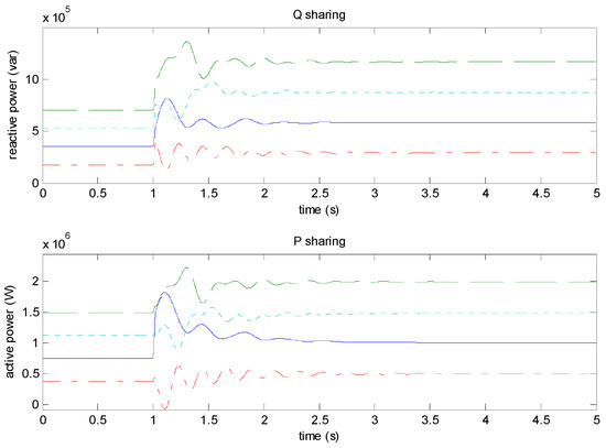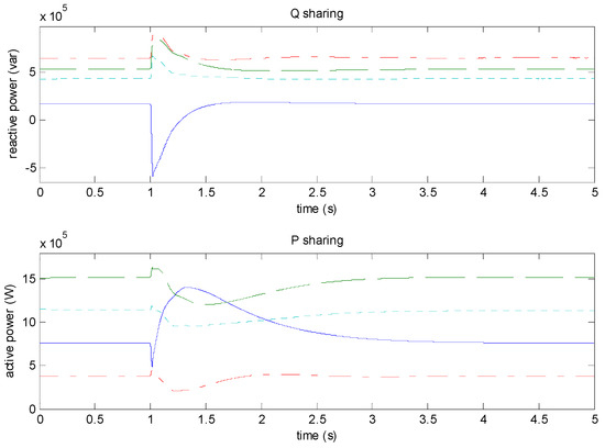- By comparing Figure 12 and Figure 14, only the proposed approach can realize accurate sharing of reactive power while the traditional centralized control algorithm cannot. As the control objective of the power sharing is to make sure both real and reactive power sharing among generators follows the capacities of DGs, obviously the results shown in Figure 12 do not meet this target while the results shown in Figure 14 do.