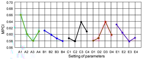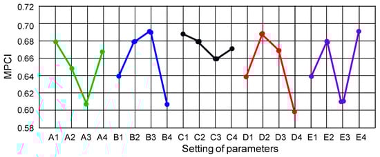 The MPCI values for five control factors with respect to the corresponding levels.