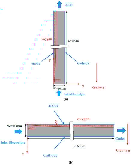 Physical model: (a) A vertical electrolysis cell; (b) A horizontal electrolysis cell.