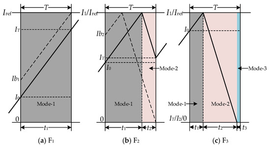 (a) F1 working pattern means that only mode-1 exists in one period; (b) F2 means that mode-1 is performed first in the period, then the switch state changes once and enters into mode-2; and (c) F3 represents the mode in the period change from mode-1 to mode-2 to mode-3.