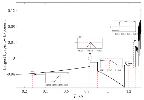 Figure 10. Largest Lyapunov exponent (LLE) of a buck converter with Iref as the changing parameter.