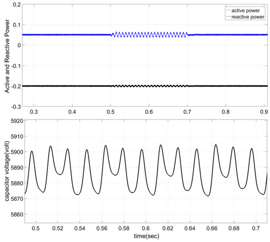 Further evaluation of the proposed controller is carried out during grid voltage disturbance. In phase, A, voltage sag is considered to drop 20%. Regarding the unbalanced voltage fault, there are oscillations in active and reactive powers which are illustrated in Figure 10. These oscillations are related to the proposed current control strategy and it makes the oscillating on active and reactive powers. Finally, as it has been demonstrated, the capacitor voltages vary within acceptable limits and are not influenced by grid voltage faults.