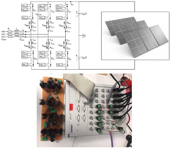 To examine the performance of the proposed controller, an experimental setup has been developed. The test system is connected to 750 W rooftop solar system. Since the system required many input/outputs and sampling frequency up to 10 kHz, the dSPACE MicroLabBox was decided to be used as the real-time interface for control of the MMC. The structure of the test setup is shown in Figure 11. The experimental setup is of a low power, 3 levels, single phase MMC, as shown in Figure 11. In the laboratory, MPPT module is used to regulate the output voltage of PV panels. The parameters for the experimental setup are listed in Table 3.