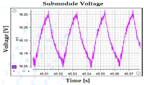 Capacitor voltage for submodule 1 obtained from the experimental setup.