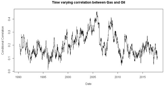 Figure 9 presents the time varying correlation between oil and gas in the US market. The correlation varies and it is not constant over time. By examining