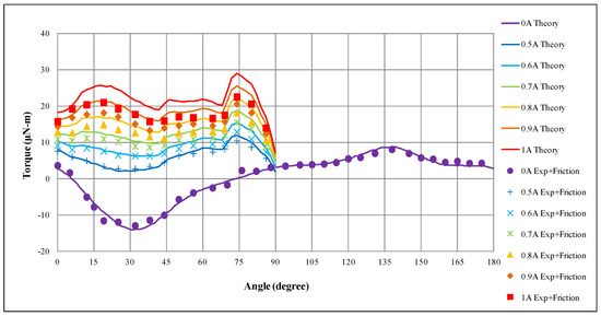 Theoretical and experimental torque-angle curves of the motor with friction correction.