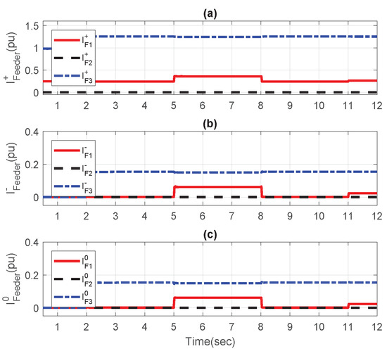(a) positive and (b) negative, and (c) zero-sequence currents of the feeders.