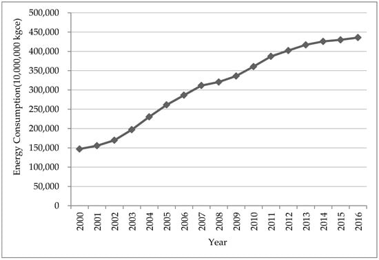10]. Along with sustainable medium-to-high economic growth under a new normal, total energy consumption has increased gradually from 2000 to 2016 in China, as shown in