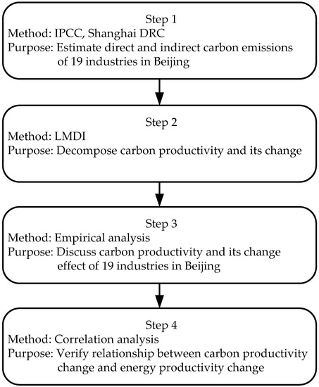 However, to the best of our knowledge, no existing study investigates a comprehensive understanding of productivity improvement with carbon emissions reduction in all industries of one city. Consequently, this study attempts to assess productivity in relation to carbon emissions for all industries in Beijing from 2013 to 2016. Productivity related to carbon emissions is carbon productivity, which is an effective combination index of environmental protection and economic development. Thus, based on the concept of productivity, this study has defined carbon productivity change from the energy consumption perspective, and explored carbon productivities and their changes of all industries in Beijing during 2013–2016.