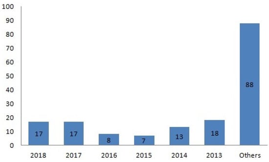 We searched these databases by using the keywords ’smart grid’, ’energy management’, ’DSM’, ’demand response management’, ’optimization objectives of DSM’, ’PAPR’, ’DERs, and ’pricing tariff’. The systematic search work was done in three steps. In the first step, we searched IEEE Xplore for the mentioned keywords where we obtained 270 research papers including journals and conferences. As we mentioned earlier, our focus was on the last decade; therefore, in the second step, we filtered for the last decade and also excluded the low quality journals and conferences which resulted in 150 papers. In the third step, we filtered the download list by studying the titles and the abstracts which excluded another 43 articles. Similarly, we searched ScienceDirect, Wiley Online Library, SpringerLink, and MDPI simultaneously by using the mentioned keywords and obtained 75, 23, 18, and 15 research articles simultaneously. After step two, the given list reduced to 47, 13, 10 and 15 articles. Then, through studying the article titles and abstracts, the download lists reduced to 25, 6, 4, and 8. Besides the above libraries, we also searched the Scopus database, US Department of Energy and European Union electricity market to collect various energy consumption reports which yielded 22 papers. The year-wise published papers are summarized in Figure 3.