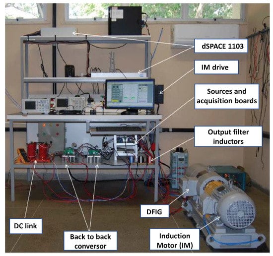 Experiments to validate the mathematical models and simulation were performed. Figure 2 shows the test bench main components and Table 3 shows the electrical data of the DFIG.