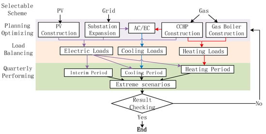 - Obtain the overall configuration capacity of the energy supply equipment from step 1, combined with the load characteristics of each region, and do the regional equipment type selection and capacity optimization.