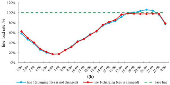 Line load rate of line 1 before and after adjustment for charging fees.