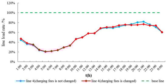 Line load rate of line 4 before and after adjustment for charging fees.