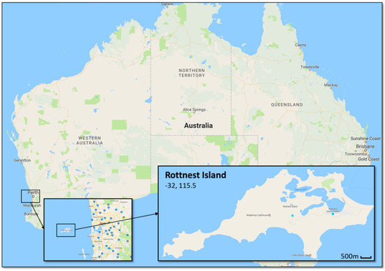 - Rottnest Island-Google Maps. Available online: goo.gl/XebxNJ (accessed on 15 July 2018).