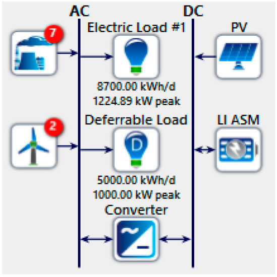 The optimization software used to validate the proposed framework was the Hybrid Renewable and Distributed Generation System Design Software (HOMER) [38]. HOMER is used to simulate microgrids systems and to find their optimal configuration. The demand can consist of both electric and thermal loads. For every component type, there is a built-in catalog with different brands and capacities with all necessary technical and financial information. HOMER features an option to download wind and solar resources. The wind and solar resources can be downloaded from the National Aeronautics and Space Administration (NASA) Surface meteorology and Solar Energy Database or from the National Renewable Energy Laboratory.