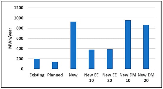 By looking at the excess energy generation from the different systems in Figure 10, it can be seen how efficient the energy usage is. The new energy systems with energy efficiency have less excess energy, but still higher than the existing and planned energy system. The excess energy could also act as a promotor for demand management or response.