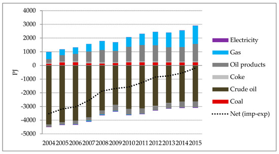 Evolution of energy imports and exports (own elaboration with data from [7]).