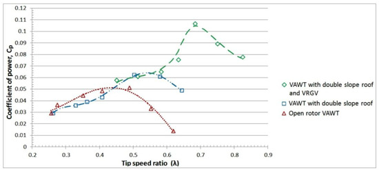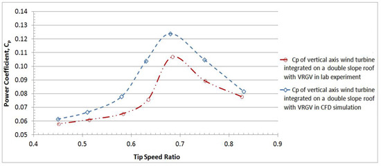The experiment was undertaken to study the power performance, Cp of the VAWT embedded in the double slope roof and VRGV by using the prototype mentioned in Section 4.1.1. The experiment was conducted in three configurations as mentioned in Section 4.1.2.