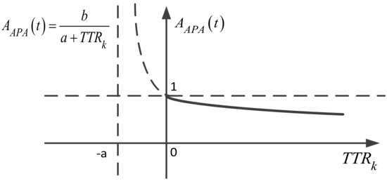 (2) When the kth fault occurs, the items in Equation (4) are all constants except for , so varies only with the change of , expressed by Equation (6). a, b respectively, denote the cumulative availability time and the cumulative time when the kth fault occurs and both of them are constants in this phase.